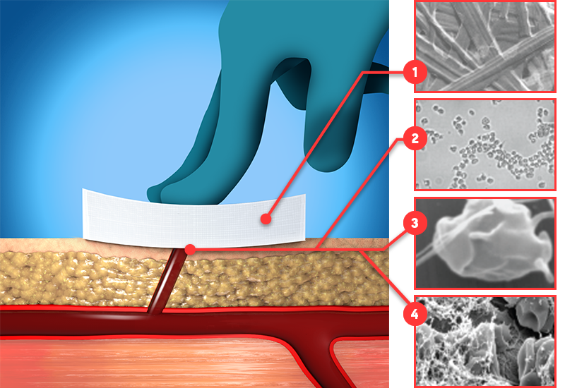 SyvekExcel® and SyvekNT® contain poly-N-acetyl glucosamine (pGlcNAc) fibers derived from microalgae. The fibers from this marine polymer are proven to accelerate platelet activation, red blood cell aggregation and vasoconstriction.1 In a randomized, double-blind, placebo-controlled study, pGlcNAc applied to the patients' femoral access site significantly reduced time to hemostasis.2 SyvekExcel and SyvekNT are non-immunogenic with no known contraindications.